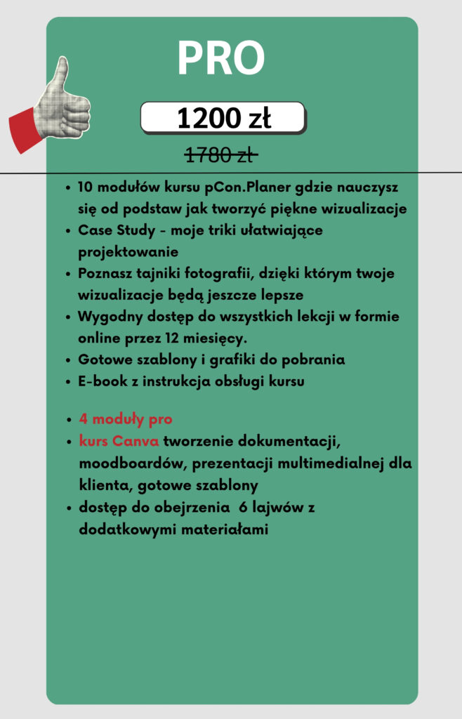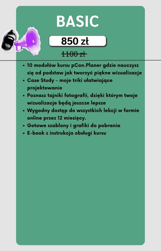 Jedyny kurs online, w którym projektantka z wieloletniemu doświadczeniem, prowadzi Cię krok po kroku przez tajniki tworzenia pięknych wizualizacji, post produkcji, tworzenia dokumentacji, kosztorysów oraz zadba o rozwój twojej firmy. Wystarczy laptop byś już za kilka tygodni, zaczęła zarabiać na swoich wizualizacjach !